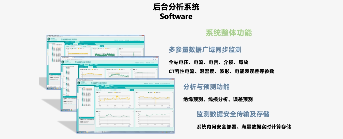 整体来看,系统可以实现多参量数据广域同步监测、站内及设备分析与预测、数据安全传输及存储,三大功能