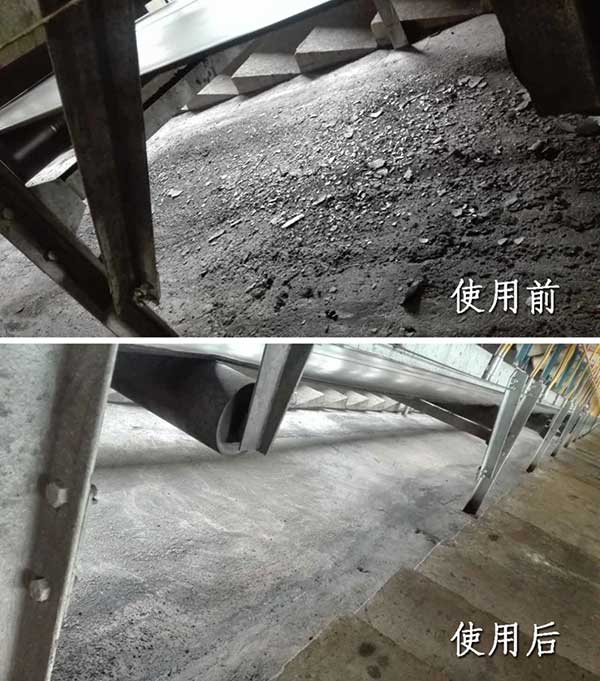 产品使用前后皮带机下地面清洁对比: