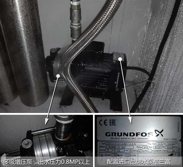 ◆ 增压系统:配置进口品牌水泵格兰富,出水水压0.8MP以上;