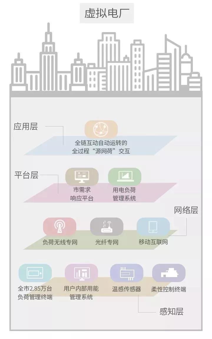 需求响应平台、用电负荷管理系统以及未来的虚拟电厂平台组成了平台层。