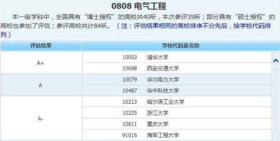 看完坊间排名,我们再来看下教育部公布的电气工程专业的官方学科排名。