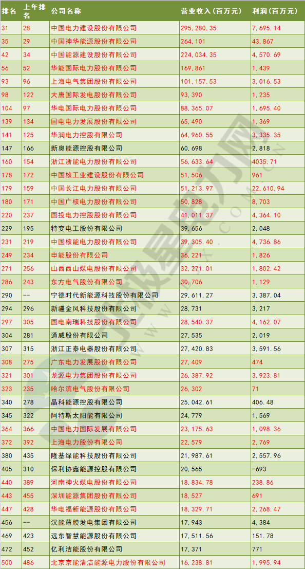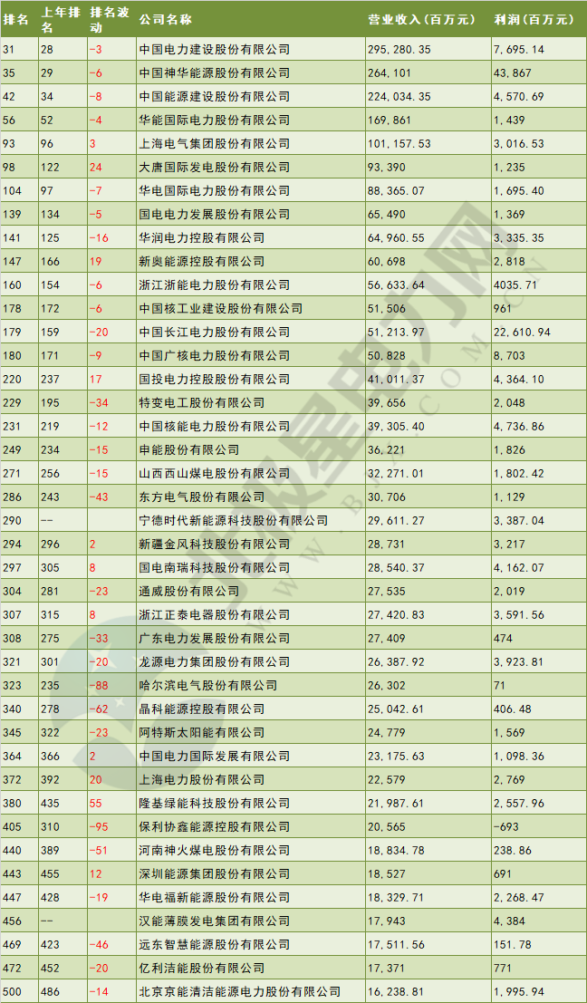 7月10日晚间,财富中文网发布了最新的《财富》中国500强排行榜,排行榜覆盖范围包括在中国境内外上市的所有中国公司,所依据数据为上市公司在各证券交易所正式披露信息。北极星电力网就排行榜内的电力企业做了简要分析。