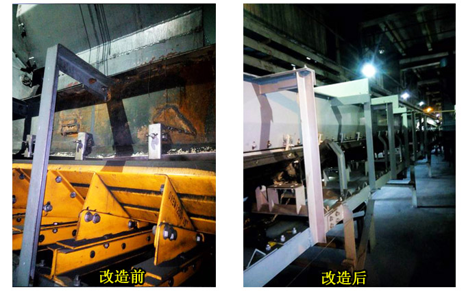 1.改造后的双密封导料槽干净整洁,焕然一新。
