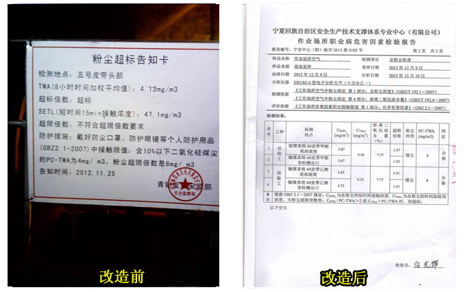 1.改造前现场粉尘浓度为47.1mg/m³,严重超标。