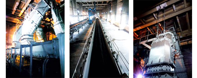 1.导料槽尾部密封不严,只有一块挡帘,运行时严重喷粉,且胶带尾部的物料不能及时运走;