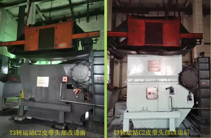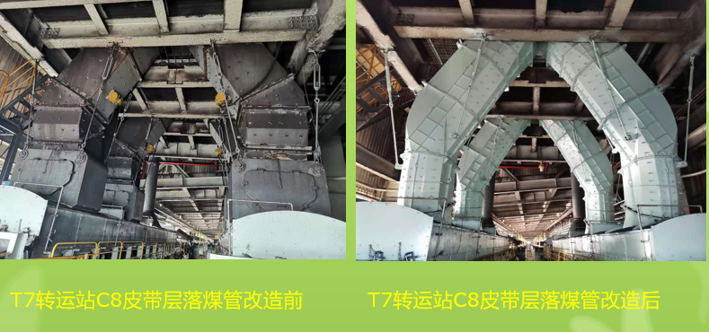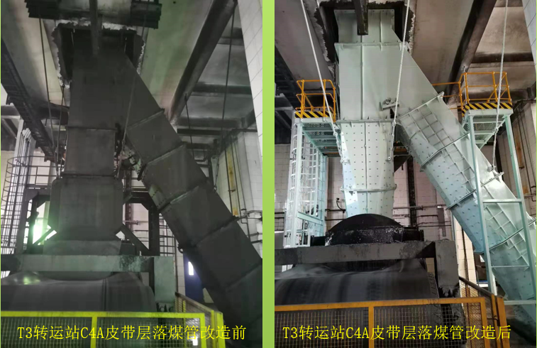 国家能源集团国华沧东电厂输煤系统曲线落煤筒改造工程于2020年08月10日开工,2020年11月15日竣工,前后历时3个月左右的时间,完成T3转运站C2头部漏斗至导料槽盖板的曲线落煤管改造1套;完成T6转运站C4B至C6AB皮带和C5至C6AB皮带导料槽盖板的曲线落煤管改造2套;完成碎煤机至C7AB皮带导料槽盖板的曲线落煤管改造2套;完成T7转运站C7AB至C8AB皮带导料槽盖板的曲线落煤管改造2套。