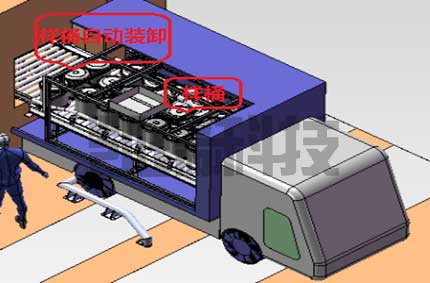 全自动采样系统次级煤样收集分选及运输装置包含次级煤样收集单元、分散次级样品自动分选单元和运输车,实现各个采样点装满的样桶通过运输车自动到达全自动煤样制样设备的离线煤样上料装置。系统含有空桶缓存位、自动集样装置、输送系统、自动封盖装置、样桶缓存位、提升装置、空桶货架柜及控制系统。
