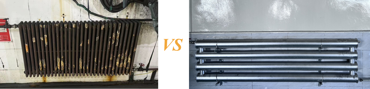 4. 原有腐蚀严重的钢四柱暖气片更换为φ133的光排管暖气包,可以适应输煤系统等恶劣环境下 的使用,提高取暖系统的寿命;并具备一定的美观性。
