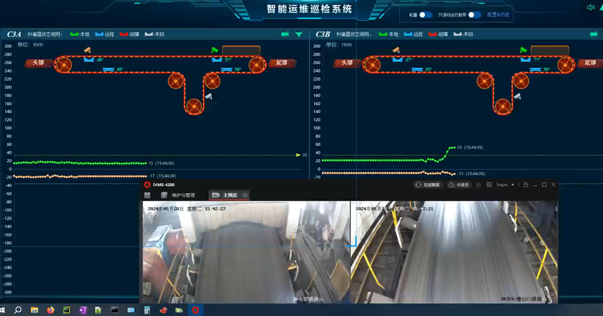 1. 皮带自动纠偏系统:输煤皮带3号、4号、5号、6号、7号带在就地实现皮带跑偏识别与自动纠偏功能,并将跑偏与纠偏数据上传至管控大平台内。