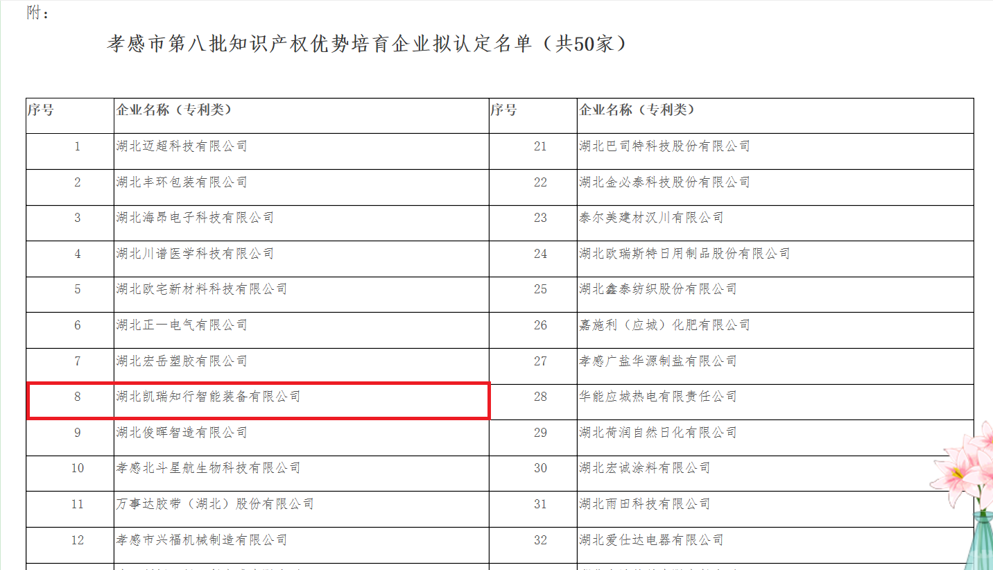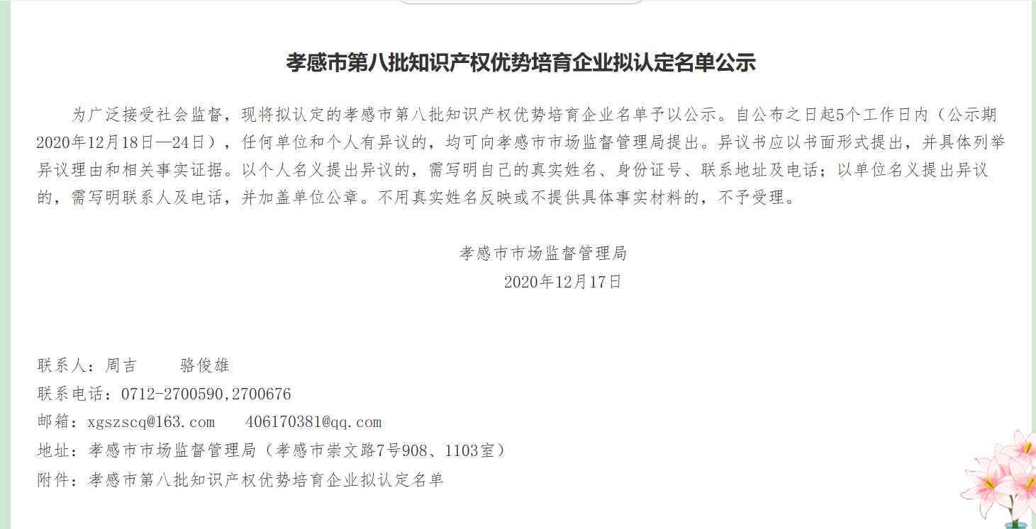 孝感市市场监督管理局关于认定孝感市第八批知识产权优势培育企业的通知